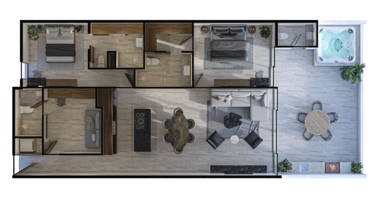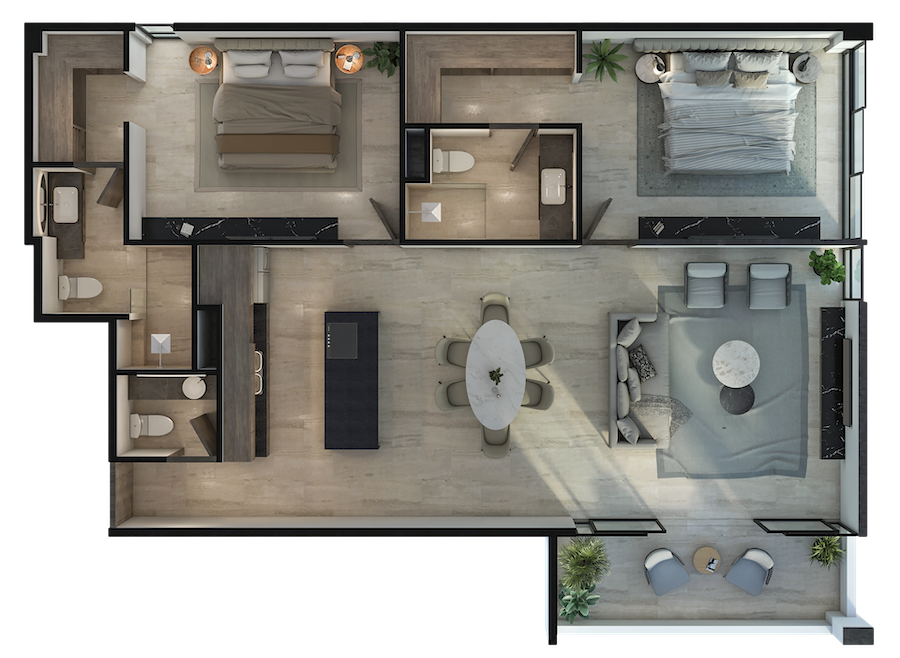 Las amenidades de TORRE SOFIA son el resultado del trabajo en conjunto con el estudio de diseño de interiores Bonhomia, quienes tienen toda la experiencia en el desarrollo de espacios únicos, exclusivos y funcionales.