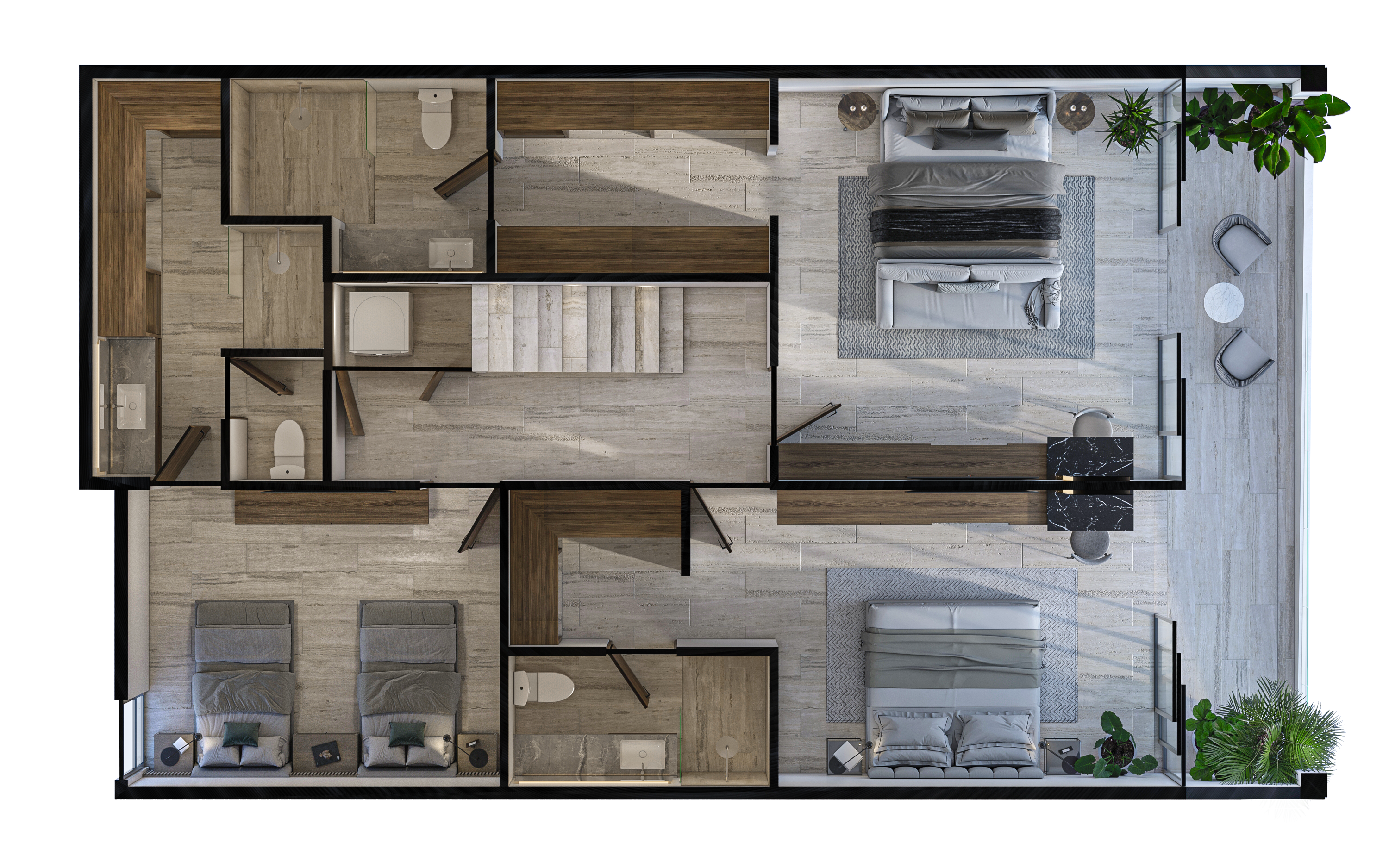- Recámara principal con clóset vestidor y baño completo. Con acceso a la terraza
